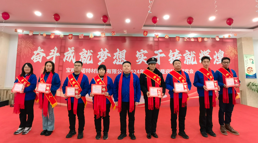 1月25日,寶雞鑫諾特材股份有限公司隆重舉行2024年度總結(jié)表彰暨迎新春聯(lián)歡會(huì)。公司黨支部書(shū)記、董事長(zhǎng)鄭永利、各中心副總及230余名員工歡聚一堂,共同慶祝新春佳節(jié)的到來(lái)。