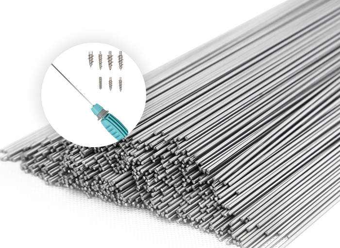運動醫(yī)學(xué)用鈦及鈦合金棒絲材,用于加工各種型號的鈦合金帶線錨釘,材料直線度、直徑公差、圓度、表面粗糙度等超標準的生產(chǎn)工藝,符合客戶高精度加工需求;棒絲材物理性能可實現(xiàn)按客戶要求定制化生產(chǎn),滿足不同產(chǎn)品的使用要求。