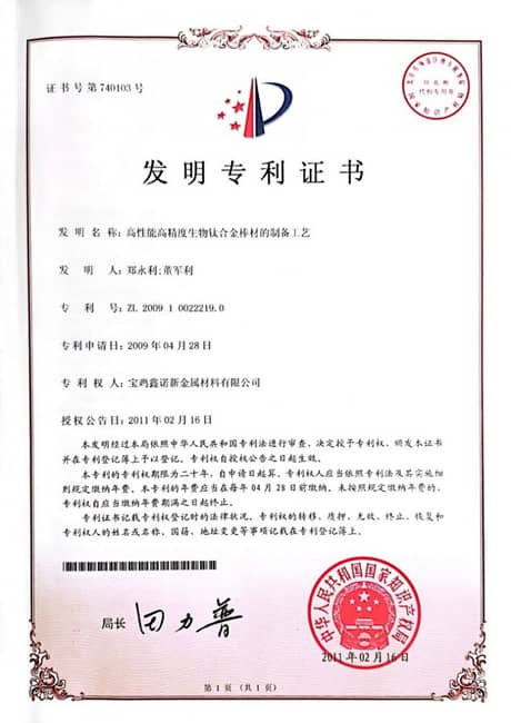 2014認(rèn)定為寶雞市企業(yè)技術(shù)中心,承接國家科技部高性能高精度醫(yī)用鈦棒材項(xiàng)目